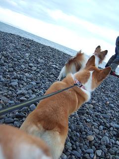 お留守番の可愛い子達は・・・ストレス溜まる一方ってって事で、リクちゃんママの車で、海に行きました。