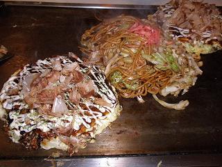 手前が、私が頼んだ、牡蠣入り、真ん中は焼きそば、パパはお店のオリジナル。