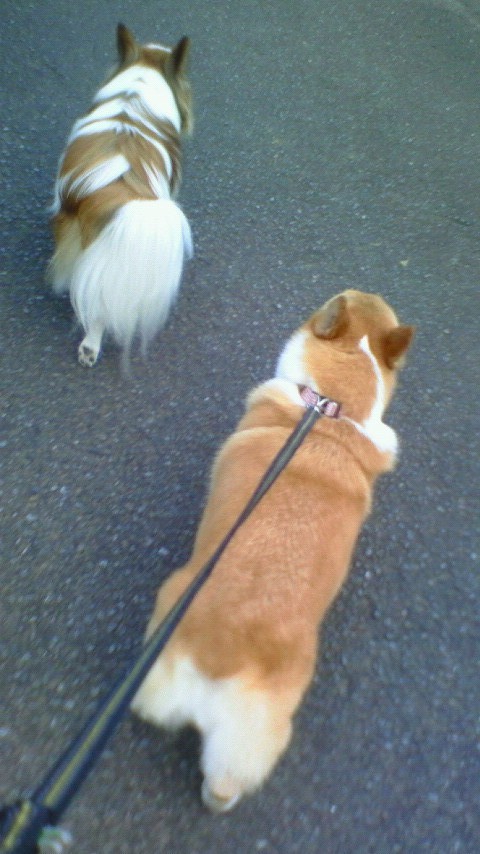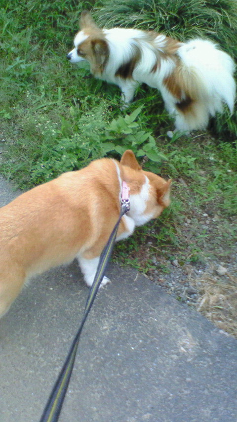 ココ最近の夕方の散歩風景。リクちゃんママが足を怪我してるので、私やケンちゃんちが散歩行ってます。