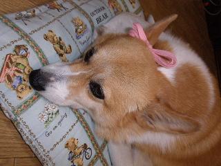 今朝はプレゼントがなかったので チッチにリボン付けて